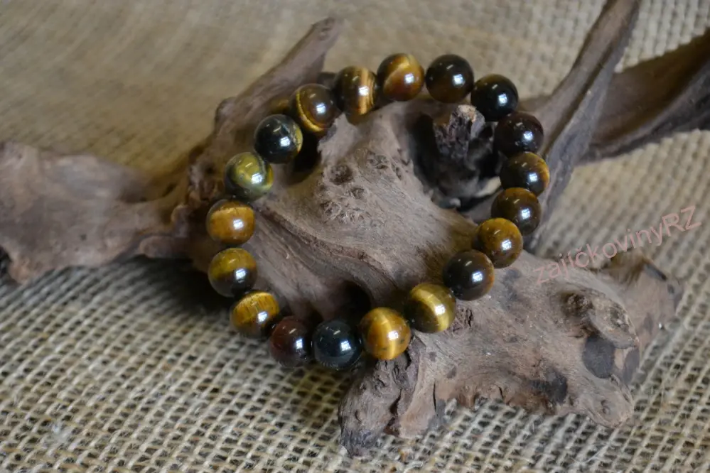Náramek z minerálních kuliček, tygří oko, průměr kuličky 10 mm