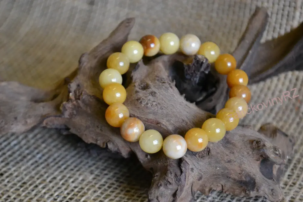 Náramek z minerálních kuliček je navlečen na elastické gumičce, každý náramek je originál, dodaný kus se může lišit odstínem barvy a velikostí korálku a obvodu.