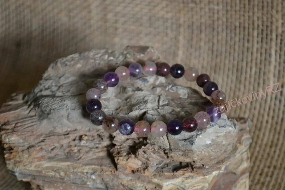 Náramek z minerálních kuliček je navlečen na elastické gumičce, každý náramek je originál, dodaný kus se může lišit odstínem barvy a velikostí korálku a obvodu.