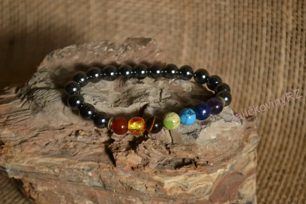 Náramek z minerálních kuliček, hematit, čakrový, průměr kuličky 8 mm