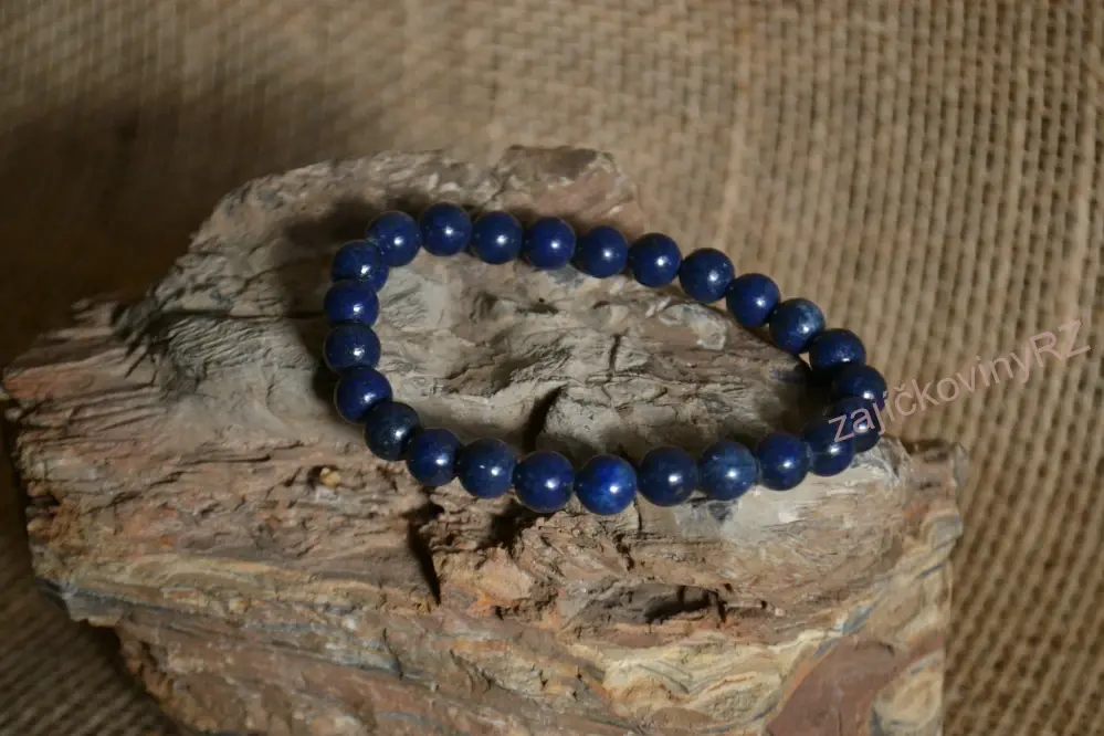 - Náramek z minerálních kuliček, lapis lazuli, průměr kuličky 8 mm