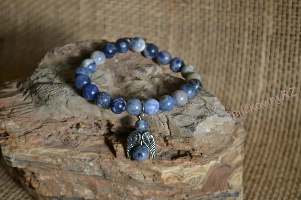 Náramek z minerálních kuliček, sodalit, s andílkem, průměr kuličky 8 mm