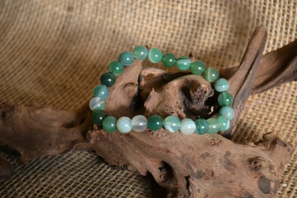 Náramek z minerálních kuliček, achát zelený, průměr kuličky 8 mm