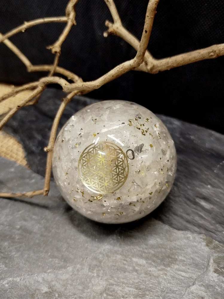- Orgonitová koule s křišťálem, průměr 6 cm