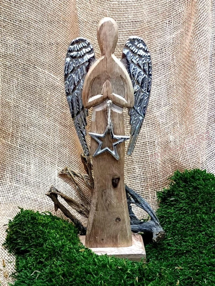 - Anděl dřevěný s kovovými křídly a hvězdou, 32,5 cm