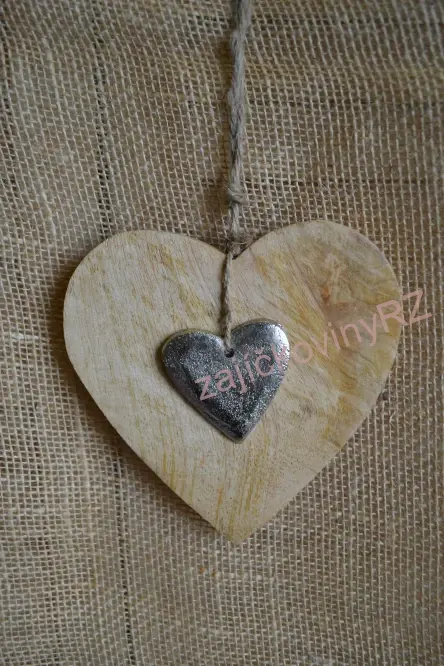 - Dřevěné srdíčko, 14x14 cm, s malým kovovým srdíčkem