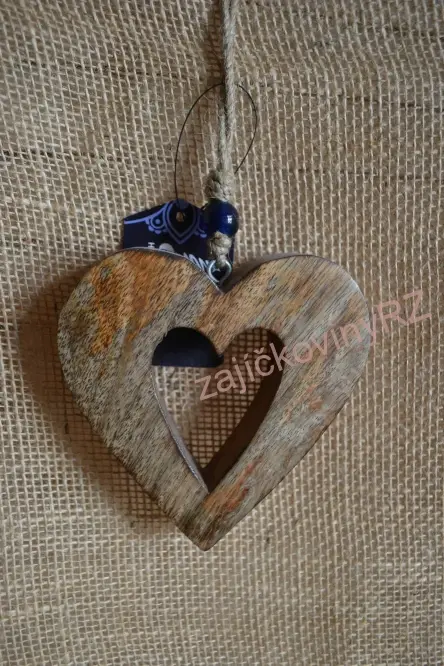 - Dřevěné srdíčko, 12x12 cm, modrý skleněný korálek