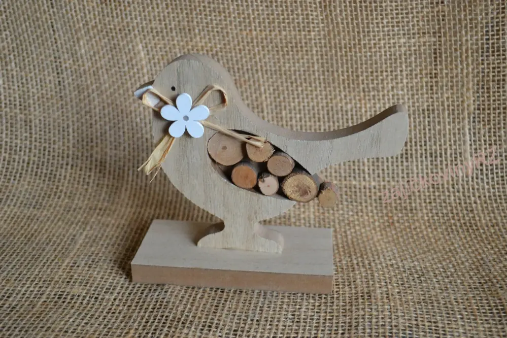 Celodřevěný ptáček nejen jako jarní dekorace.
