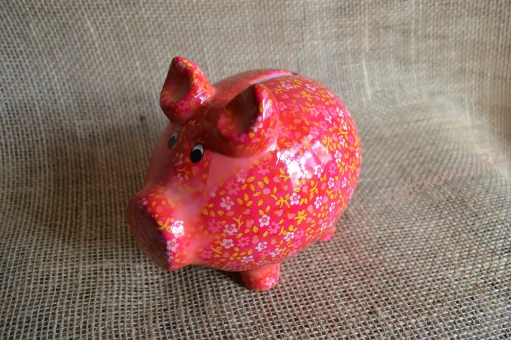 - Pokladnička prasátko, červené s květy, 15 cm