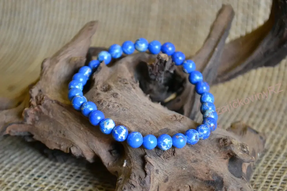 Náramek z minerálních kuliček je navlečen na elastické gumičce, každý náramek je originál, dodaný kus se může lišit odstínem barvy a velikostí korálku a obvodu.