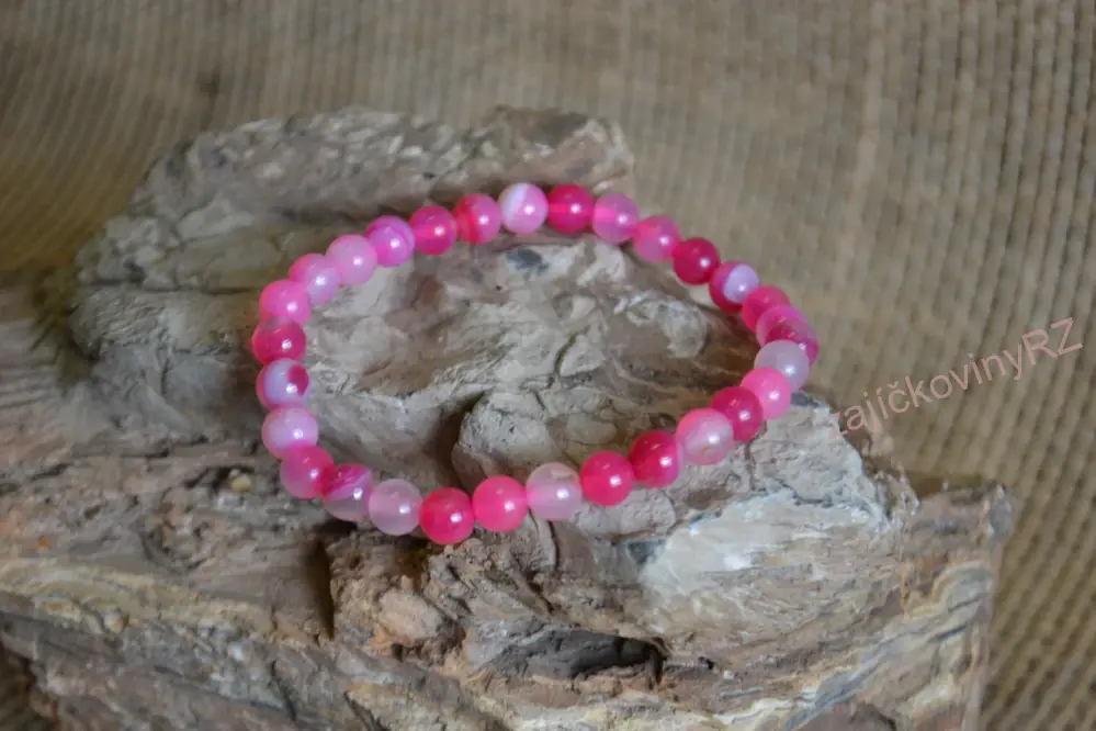 Náramek z minerálních kuliček, achát růžový, průměr kuličky 6 mm