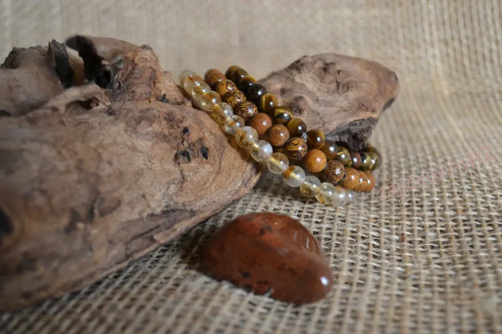 Náramky sada hnědá 3 ks korálek 6 mm + 1 ks kámen obsidián mahagonový 3-4 cm