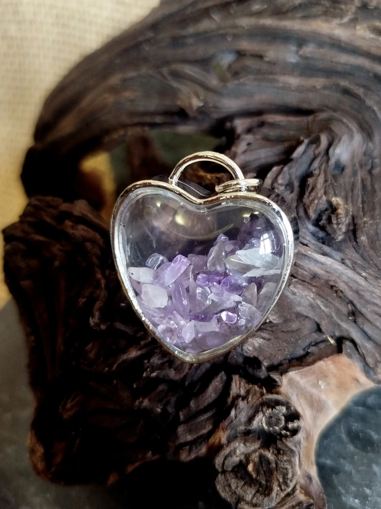 - Přívěsek srdíčko, se zlomky přírodního ametystu