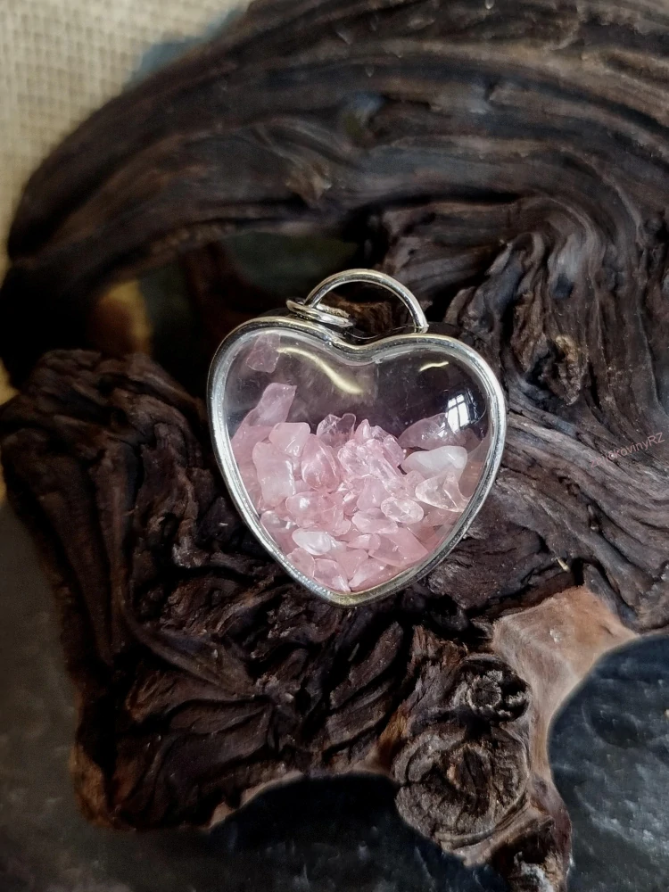 Přívěsek srdíčko, se zlomky přírodního růženínuSkladem 1 ks259 Kč/ ks214 Kč bez DPH