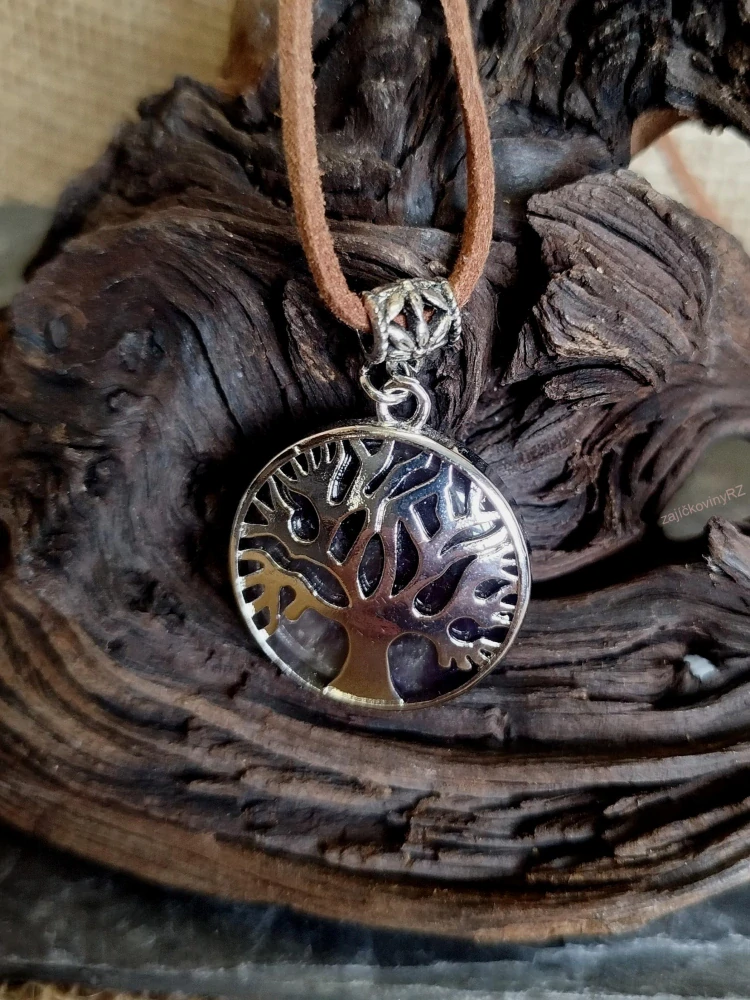 - Přívěsek strom života s ametystem, průměr 2,5 cm, včetně šňůrky z eko kůže