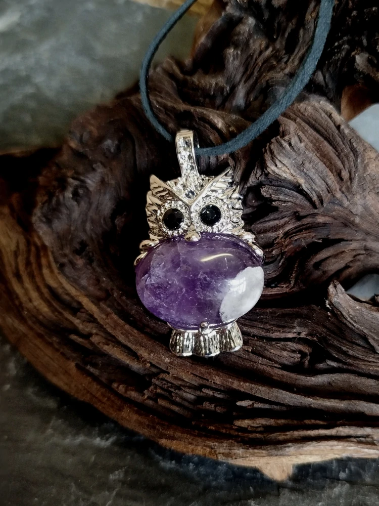 - Přívěsek třpytivý sova s ametystem 2,5 cm, včetně šňůrky z eko kůže