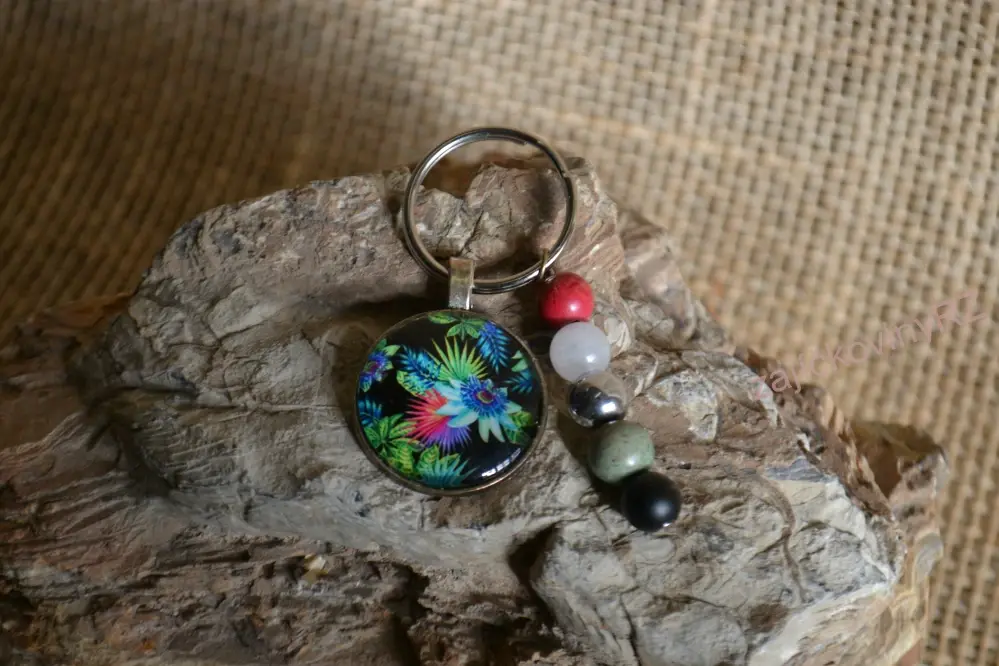 - Klíčenka s přívěskem s minerály, motiv květin