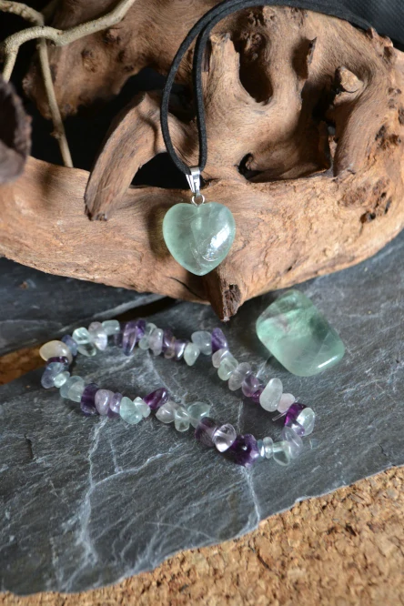 Sada fluorit-náramek, přívěsek a kámen