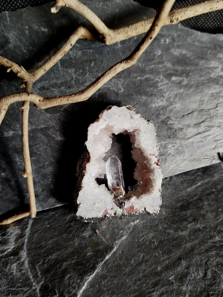 - Přívěsek achát, drúza s velkým krystalem křišťálu