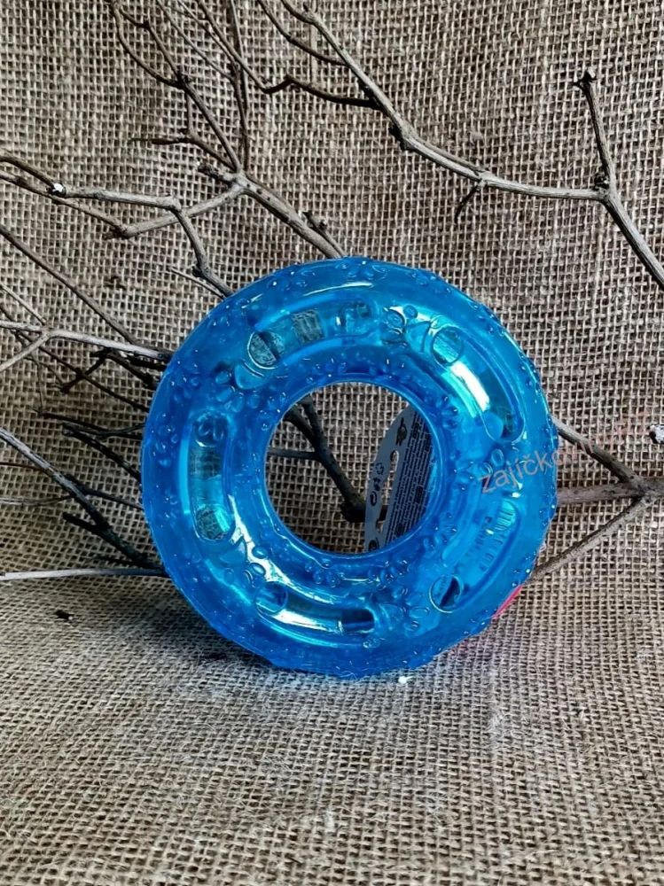 Modrý kroužek z termoplastické pryže je lehký, měkký a zároveň odolný. Lze ho použít i na plnění drobnými granulkami či pamlsky.