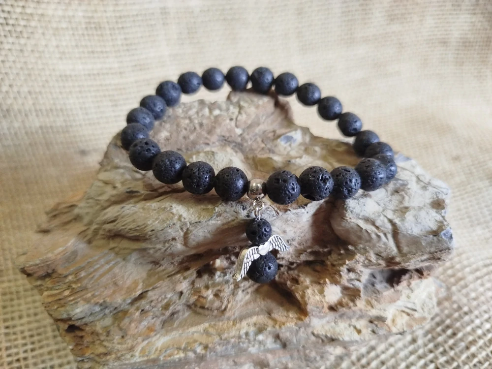 Náramek lávový, s andílkem, průměr kuličky 8 mm