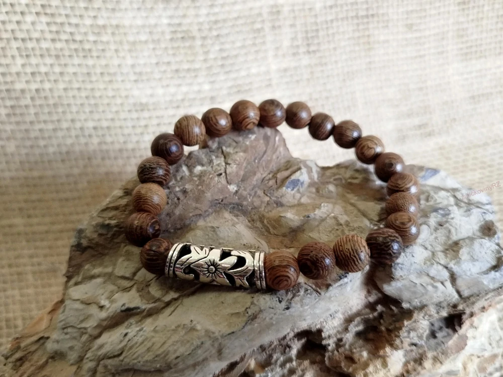 Dřevěný náramek s kovovým článkem, průměr kuličky 8mmSkladem 1 ks69 Kč/ ks57 Kč bez DPH