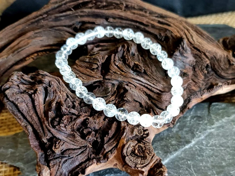 Náramek z minerálních kuliček, křišťál pukaný průměr kuličky 6 mmSkladem 2 ks169 Kč/ ks140 Kč bez DPH