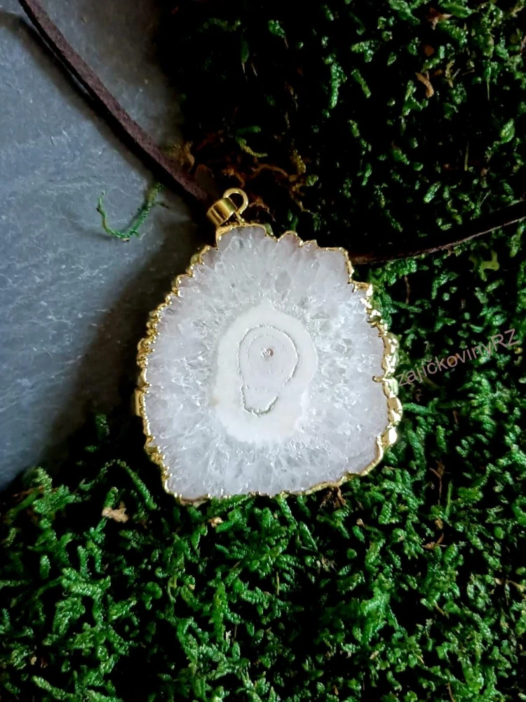 - Přívěsek křišťál, řez krápníkem XL, 5x6 cm, včetně šňůrky z eko kůže