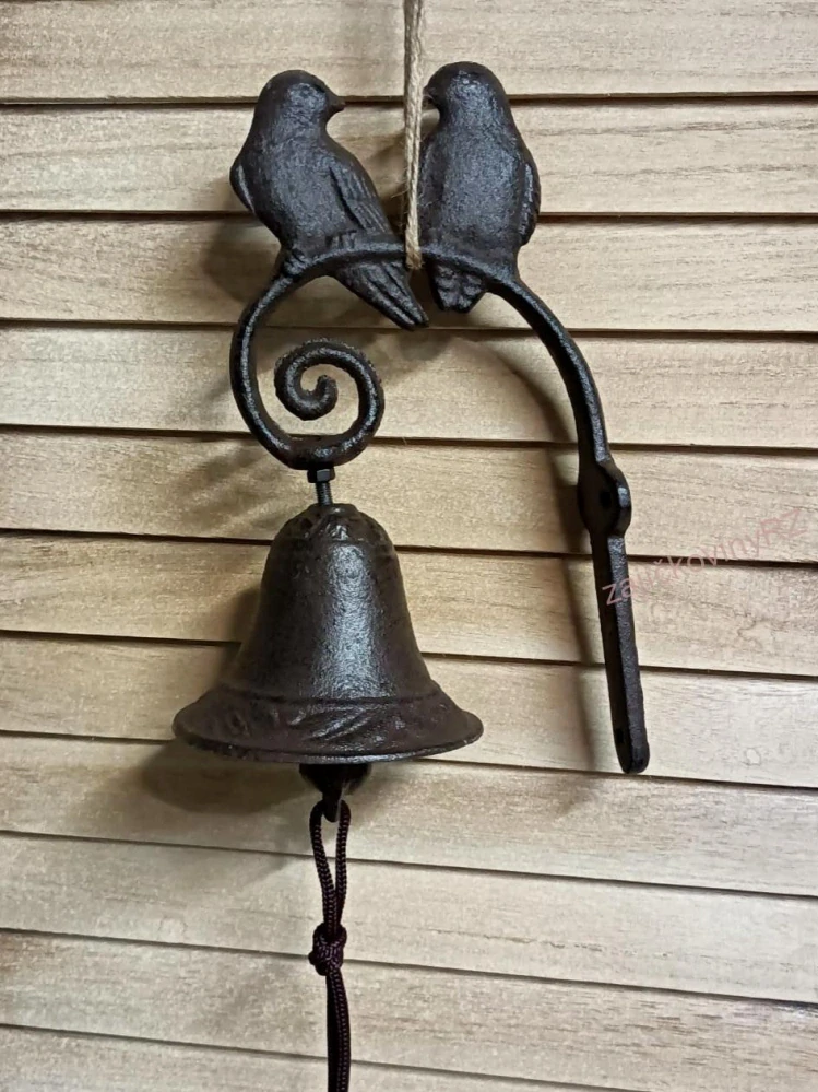 - Litinový zvon hnědý, s ptáčky, 23 cm