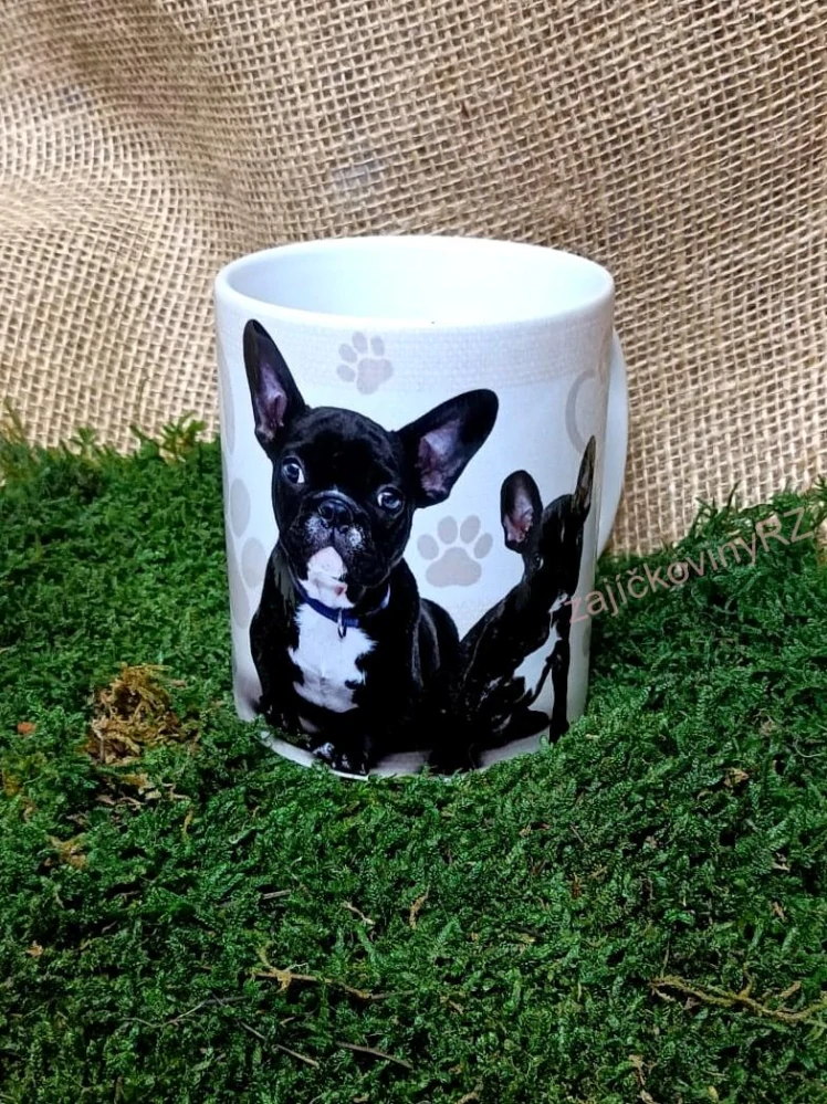 Krásný porcelánový hrnek s potiskem psích mazlíčků. Vlivem tepla může popraskat vnitřní glazura. Tekutiny, které barví, mohou vytvořit tmavé zbarvení uvnitř nádoby, což je klasický jev např. u keramických nádob - není na závadu, ani důvod k reklamaci.