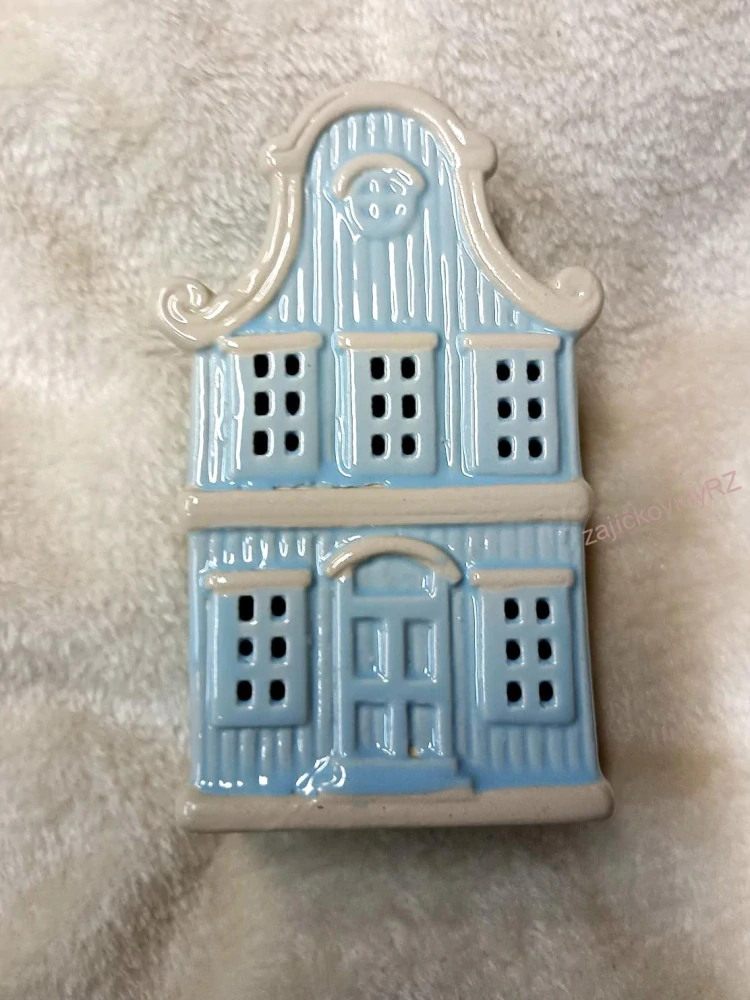- Keramický domeček, modrý, 16cm