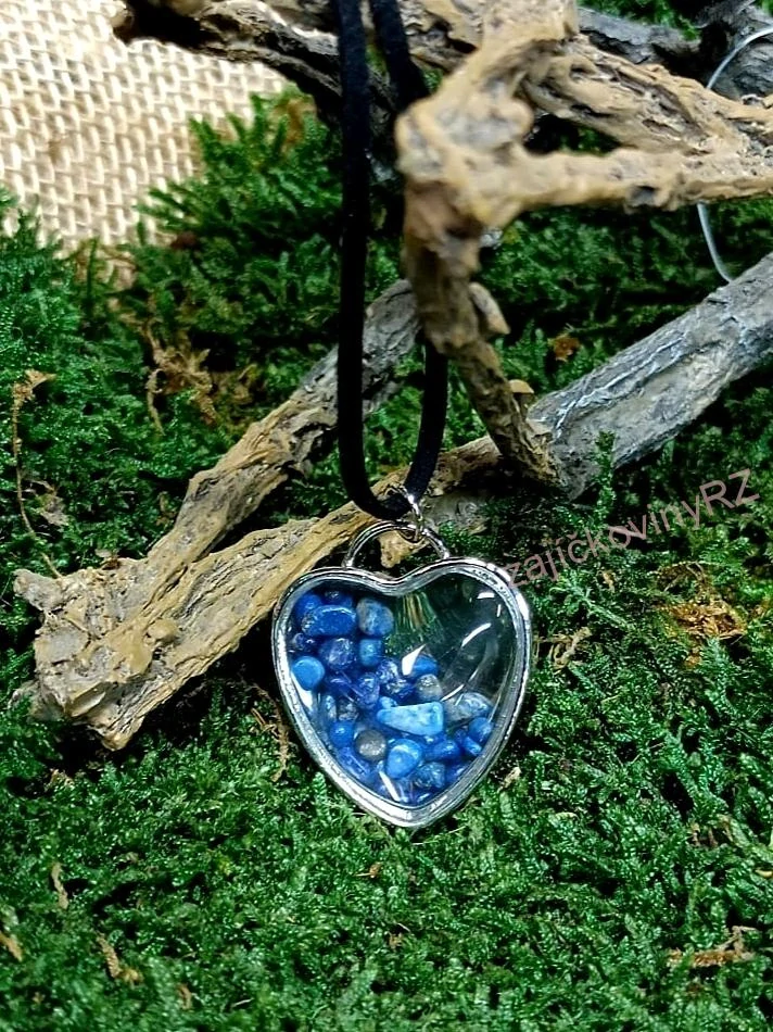 - Přívěsek srdíčko, se zlomky přírodního lapis lazuli