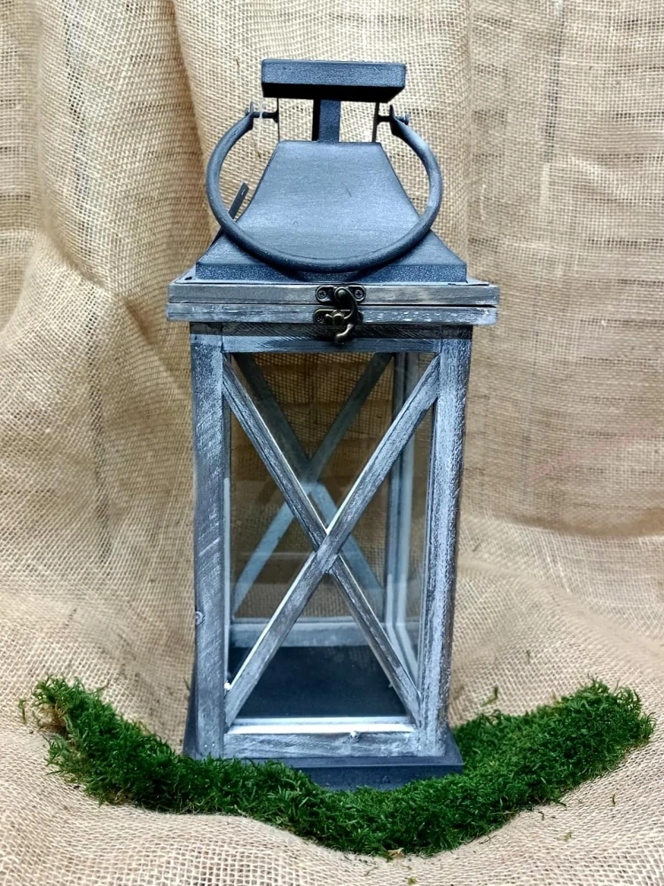 Proměňte svůj interiér či zahradu ve stylové místo díky této krásné lucerně v kombinaci tmavé barvy kovu a šedého dřeva, která dodá každému prostoru jedinečnou atmosféru.