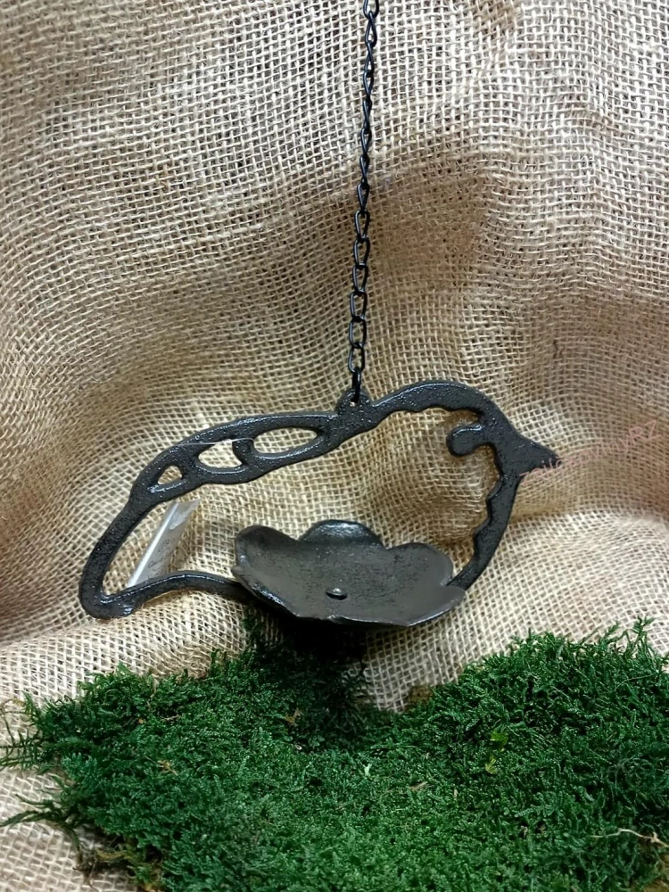 Malá litinová dekorace ptáčka s miskou, která slouží zároveň jako krmítko pro venkovní ptactvo. Litina je specifická na údržbu, doporučujeme povrch ošetřit olejem, tak se zamezí vzniku rzi. Nenechávejte ve vlhku! Nepoužívejte organické kyseliny typu octa. Není hračka pro děti.