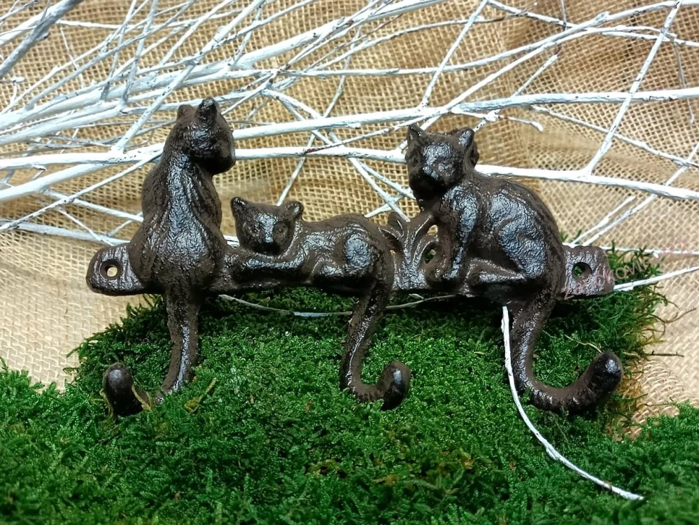 Kočičí rodinka- vtipný litinový věšák, nejen pro milovníky psů. Vzhledem k váze produktu doporučujeme řádně upevnit. Není hračka pro děti. Nevystavovat přímému vlhku.