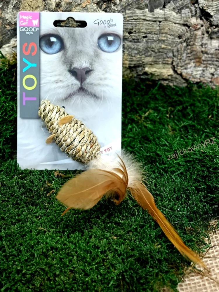 Magic Cat hračka myška z mořské trávy, ozdobená pírky je velmi oblíbenou hračkou pro kočičky. Zvíře nenechávejte s hračkou bez dozoru. Není hračka pro děti.