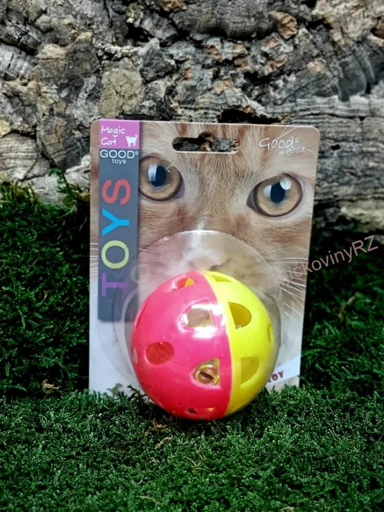 Barevný míček z plastu, se kterým se kočka zabaví na dlouhé hodiny. Rolnička uvnitř vydává jemný zvuk, který ještě více podněcuje ke hře. Nenechávejte zvíře s hračkou bez dozoru. Není hračka pro děti.