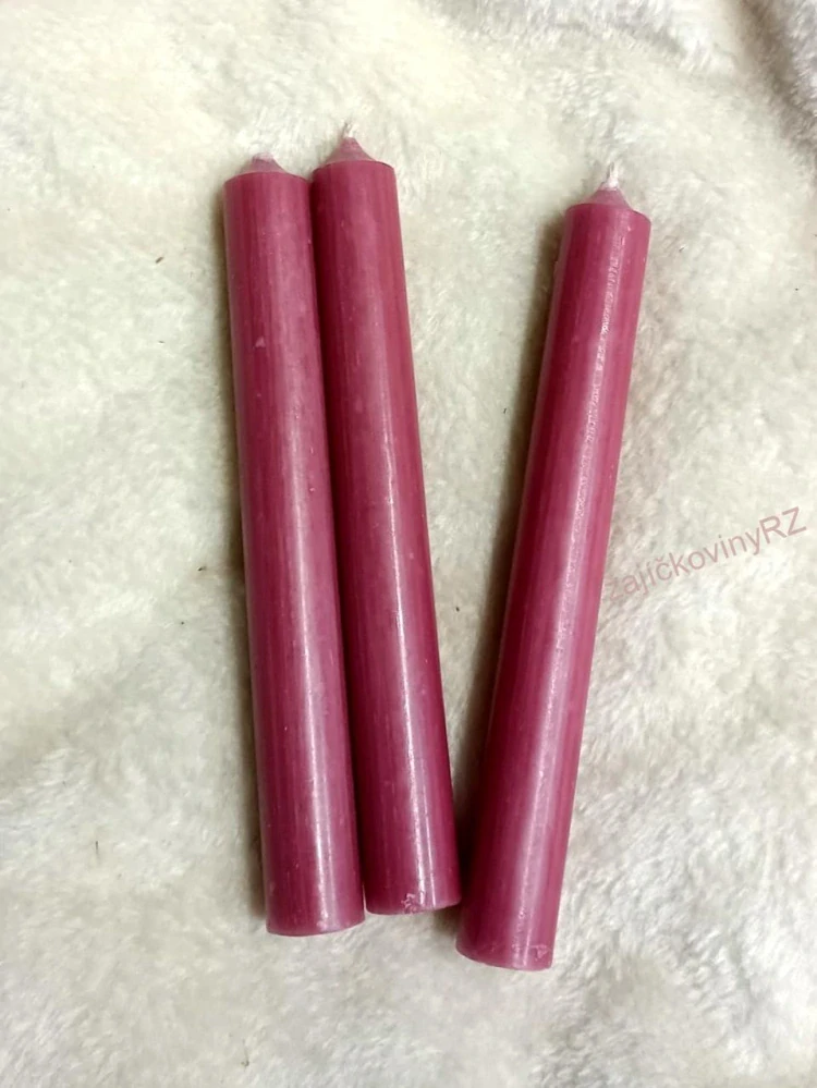 Stolní parafínová svíčka bez vůně. Hoří beze zbytku. K dostání různé barvy.