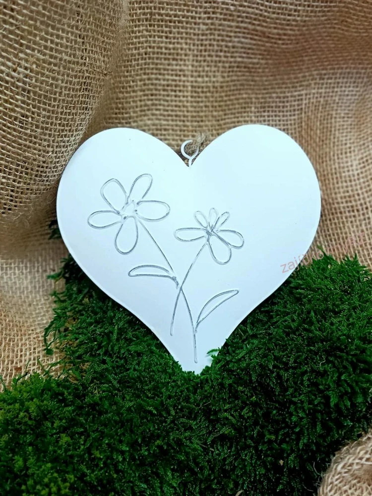 Krásné bílé plechové srdíčko na zavěšení. Nevystavovat vlhku. Není hračka pro děti.
