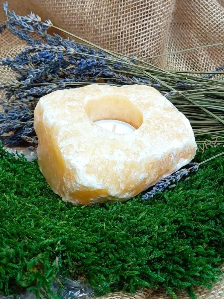 Krásný svícen z oranžového kalcitu. Oranžový kalcit dle lidových tradic prý posiluje životní energii a chuť do života. Harmonizuje a uvádí do rovnováhy sakrální čakru. Traduje se, že přináší rozhodnost, sebedůvěru a činorodost. Přírodní materiál-může se mírně lišit tvarem, rozměrem, barevností, strukturou. Náhodný výběr. Vlastnosti kamene jsou šířeny dle obecně dostupných informací o využití - nejsou vědecky ověřeny, nemají prokazatelné léčebné účinky. Přesto jsou vzácným a nádherným doplňkem pro každého, kdo věří a je spjat s přírodou. Upozornění: není hračka pro děti. Nenechávat hořet bez dozoru. Nevystavovat vlhku.