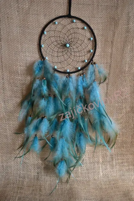 Lapač snů, 50 cm, černý s tyrkysovými peříčkySkladem 1 ks399 Kč/ ks330 Kč bez DPH